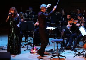 W czasie koncertów Filharmonii Kameralnej im. Witolda Lutosławskiego w Łomży, zwłaszcza tych abonamentowych, przeważa rzecz jasna repertuar klasyczny z różnych epok, z naciskiem na współczesne dzieła rodzimych kompozytorów, ale nie oznacza to, że orkiestra zamyka się na muzykę rozrywkową w ambitnym wydaniu. Dyrektor naczelny i artystyczny FKWL Jan Miłosz Zarzycki regularnie zaprasza więc do udziału w koncertach artystów spoza świata klasyki, od wielkich gwiazd jazzu, poprzez wykonawców crossoverowych, łączących różne muzyczne światy, aż do bardzo znanych wykonawców popowych. Przez lata z łomżyńską orkiestrą zaśpiewało ich naprawdę wielu, by wymienić choćby Zbigniewa Wodeckiego, Jarka Wista, Ewę Urygę czy Romana Gerczaka, a teraz do ich grona dołączyła Danuta Błażejczyk. To artystka tak naprawdę śpiewająca od ponad 50 lat, terminująca w różnych zespołach i składach, w tym u Maryli Rodowicz, ale jej kariera tak na dobre rozpoczęła się dopiero w roku 1985, kiedy to Włodzimierz Korcz i Wojciech Młynarski specjalnie dla niej napisali piosenkę „Taki cud i miód”, jeden z przebojów festiwalu opolskiego i lokomotywę debiutanckiego LP piosenkarki, zatytułowanego po prostu „Danuta Błażejczyk”. Album nagrany z wyśmienitymi jazzmanami i muzykami sesyjnymi wyznaczył na lata kierunek jej artystycznych poszukiwań, naznaczonych nieczęsto wydawanymi, ale znaczącymi kolejnymi albumami, jak choćby „Gershwin: Summertime” czy niedawny „Gdzie ci mężczyźni. Tribute To Danuta Rinn”. Danuta Błażejczyk przyjechała do Łomży nie tylko z własnym zespołem (Michał Iwanek – fortepian, syntezator, Jakub Kowalczyk – gitary, Dariusz Szymańczak gitara basowa i Andrzej Błażejczyk – perkusja), który płynnie wtopił się w 18-osoowy, smyczkowo-dęty skład Filharmonii Kameralnej, ale też z nader zróżnicowanym repertuarem. Swoje piosenki, ku rozczarowaniu fanów, zaśpiewała tylko trzy: obowiązkową „Taki cud i miód”, w której towarzyszył jej tylko wspomniany wyżej kwartet, „Królem swego życia bądź”, do której napisała również tekst oraz „Na krawędzi nocy i dnia”. O poczuciu niedosytu czy rozczarowaniu nie było jednak mowy, bowiem mocnymi punktami programu okazała się liczna reprezentacja przebojów z repertuaru Ireny Santor.