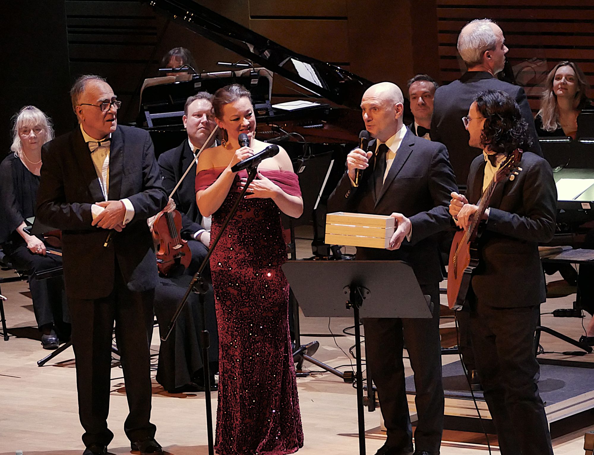 Zespół nie mógł też pominąć utworu, który zrobił na słuchaczach ogromne wrażenie poprzednim razem, czyli „To ostatnia niedziela”, wielki przebój międzywojnia z repertuaru Mieczysława Fogga, zaśpiewany po polsku przez po polsku Jose Torresa Duvala, wspieranego przez Magdalenę Lechowską. Dodatkową atrakcją było tradycyjne losowanie wejściówek dla posiadaczy koncertowych abonamentów FKWL, które wciąż jeszcze można kupować, bowiem sezon 2025/2026 potrwa do połowy czerwca i tak atrakcyjnych koncertów jak ten z udziałem San Luis Tango będzie znacznie więcej!