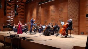 Zdjęcia z nagrań, które odbyły się 8 października 2025 i podczas których zarejestrowaliśmy Poloneza D-dur Henryka Wieniawskiego oraz Andante spianato i Wielkiego Poloneza Es-dur Fryderyka Chopina ze znakomitymi młodymi solistami skrzypaczką Zoją Sygudą i pianistą Adamem Goździewskim. Towarzyszyła im orkiestra Filharmonii Kameralnej im. Witolda Lutosławskiego w Łomży pod batutą Jana Miłosza Zarzyckiego. Reżyserem dźwięku był Andrzej Brzoska a nagrania wideo dokonała Telewizja Narew.