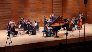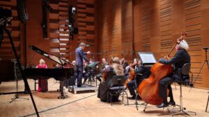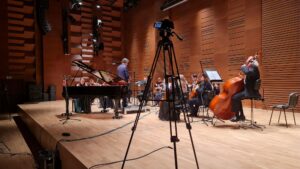 Zdjęcia z nagrań, które odbyły się 4 listopada 2025 i podczas których zarejestrowaliśmy dwa utwory Fryderyka Chopina – Koncert fortepianowy e-moll op. 11 oraz Fantazję na tematy polskie. Partie solowe wykonały Joanna Ławrynowicz-Just i jej studentka Zuzanna Sejbuk z towarzyszeniem orkiestry Filharmonii Kameralnej im. Witolda Lutosławskiego w Łomży pod batutą Jana Miłosza Zarzyckiego. Reżyserem dźwięku był Andrzej Brzoska a nagrania wideo dokonała Telewizja Narew.