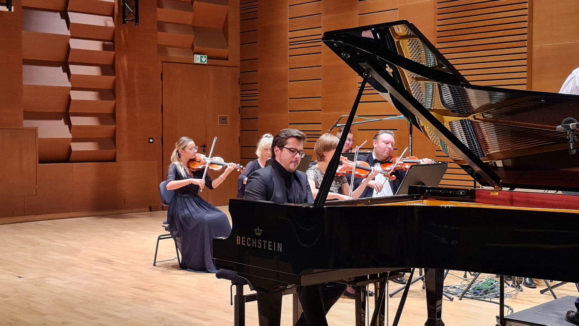 Zdjęcia z nagrań, które odbyły się 8 października 2025 i podczas których zarejestrowaliśmy Poloneza D-dur Henryka Wieniawskiego oraz Andante spianato i Wielkiego Poloneza Es-dur Fryderyka Chopina ze znakomitymi młodymi solistami skrzypaczką Zoją Sygudą i pianistą Adamem Goździewskim. Towarzyszyła im orkiestra Filharmonii Kameralnej im. Witolda Lutosławskiego w Łomży pod batutą Jana Miłosza Zarzyckiego. Reżyserem dźwięku był Andrzej Brzoska a nagrania wideo dokonała Telewizja Narew.