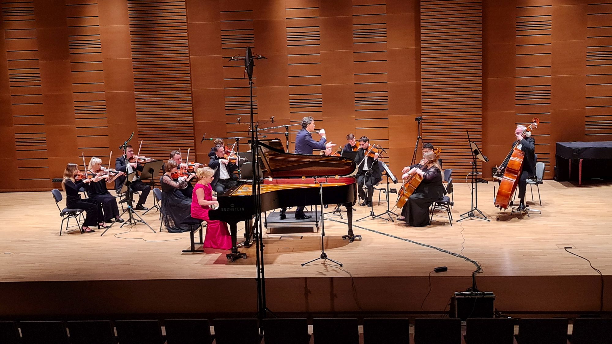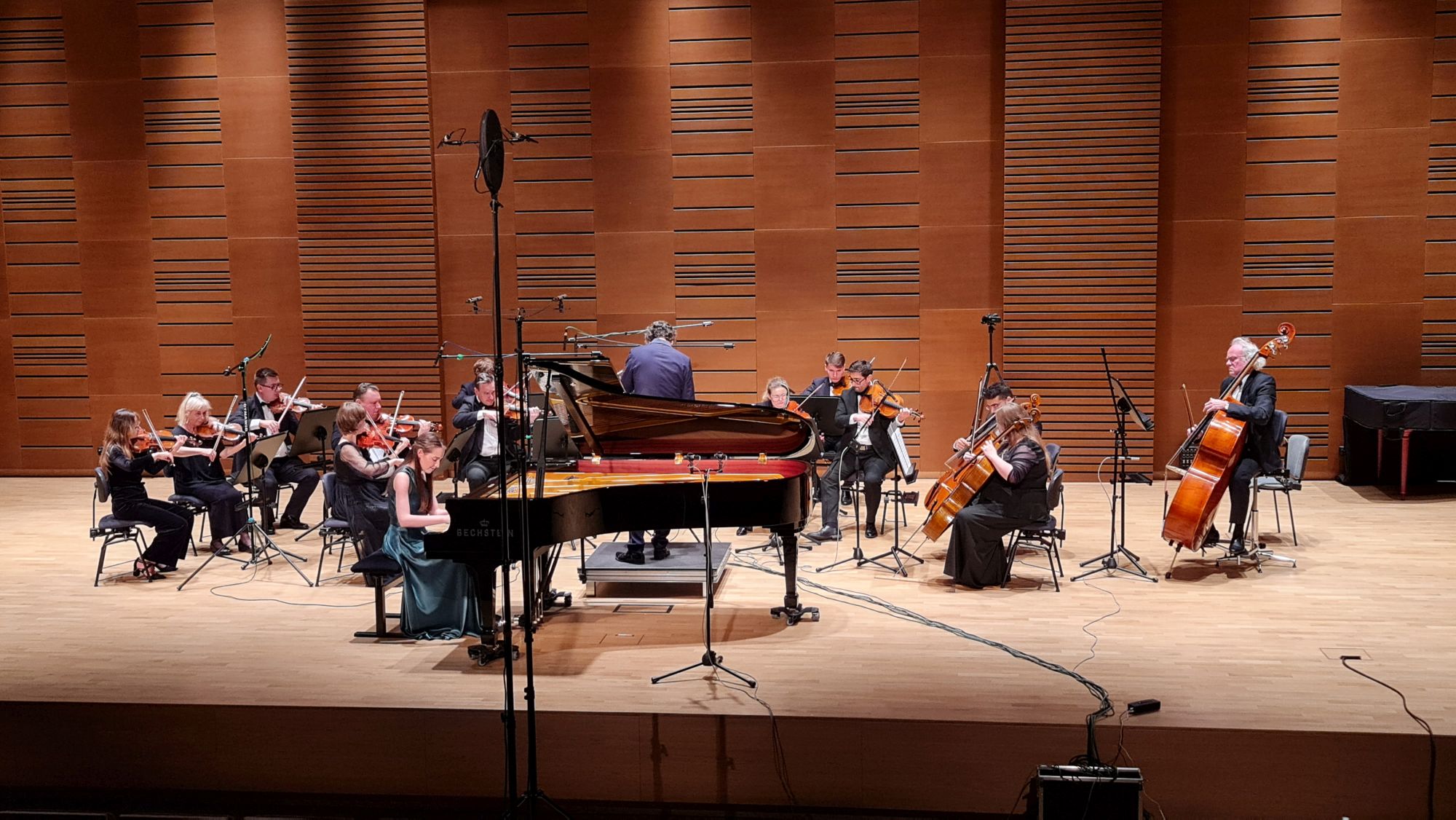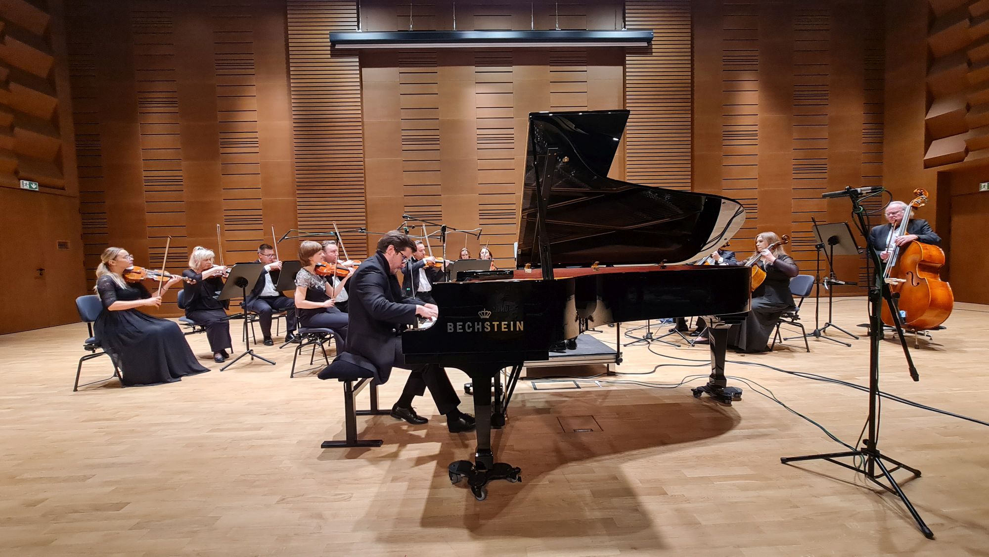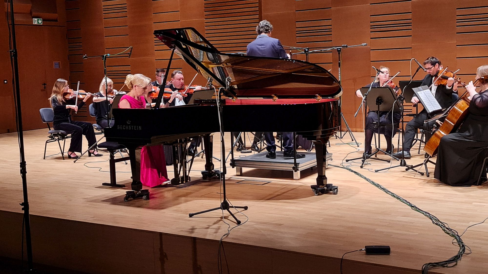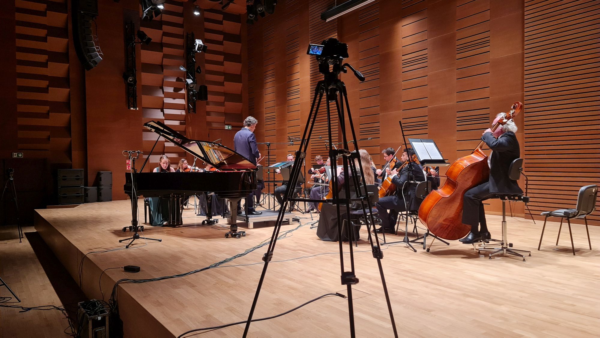 Zdjęcia z nagrań, które odbyły się 4 listopada 2025 i podczas których zarejestrowaliśmy dwa utwory Fryderyka Chopina – Koncert fortepianowy e-moll op. 11 oraz Fantazję na tematy polskie. Partie solowe wykonały Joanna Ławrynowicz-Just i jej studentka Zuzanna Sejbuk z towarzyszeniem orkiestry Filharmonii Kameralnej im. Witolda Lutosławskiego w Łomży pod batutą Jana Miłosza Zarzyckiego. Reżyserem dźwięku był Andrzej Brzoska a nagrania wideo dokonała Telewizja Narew.