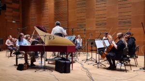 Zdjęcia z nagrań, które odbyły się 5 listopada 2025 i podczas których zarejestrowaliśmy „Music for Blue Notes” na klawesyn i smyczki Mikołaja Hertla. Partię solową wykonała klawesynistka Alina Ratkowska, której towarzyszyła orkiestra Filharmonii Kameralnej im. Witolda Lutosławskiego w Łomży pod batutą Jana Miłosza Zarzyckiego. Reżyserem dźwięku był Andrzej Brzoska.