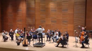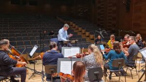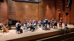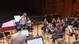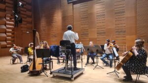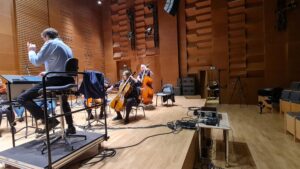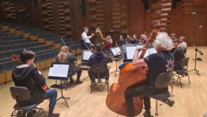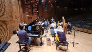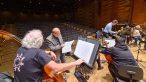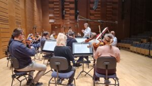Zdjęcia z nagrań, które odbyły się 7 października 2025 i podczas których zarejestrowaliśmy cykl piosenek „Kocham cię kochać” do słów Grażyny Orlińskiej Mikołaja Hertla. Orkiestra Filharmonii Kameralnej im. Witolda Lutosławskiego w Łomży nagrywała pod batutą Jana Miłosza Zarzyckiego a reżyserem dźwięku był Andrzej Brzoska. Swoją obecnością zaszczycił nas sam kompozytor.