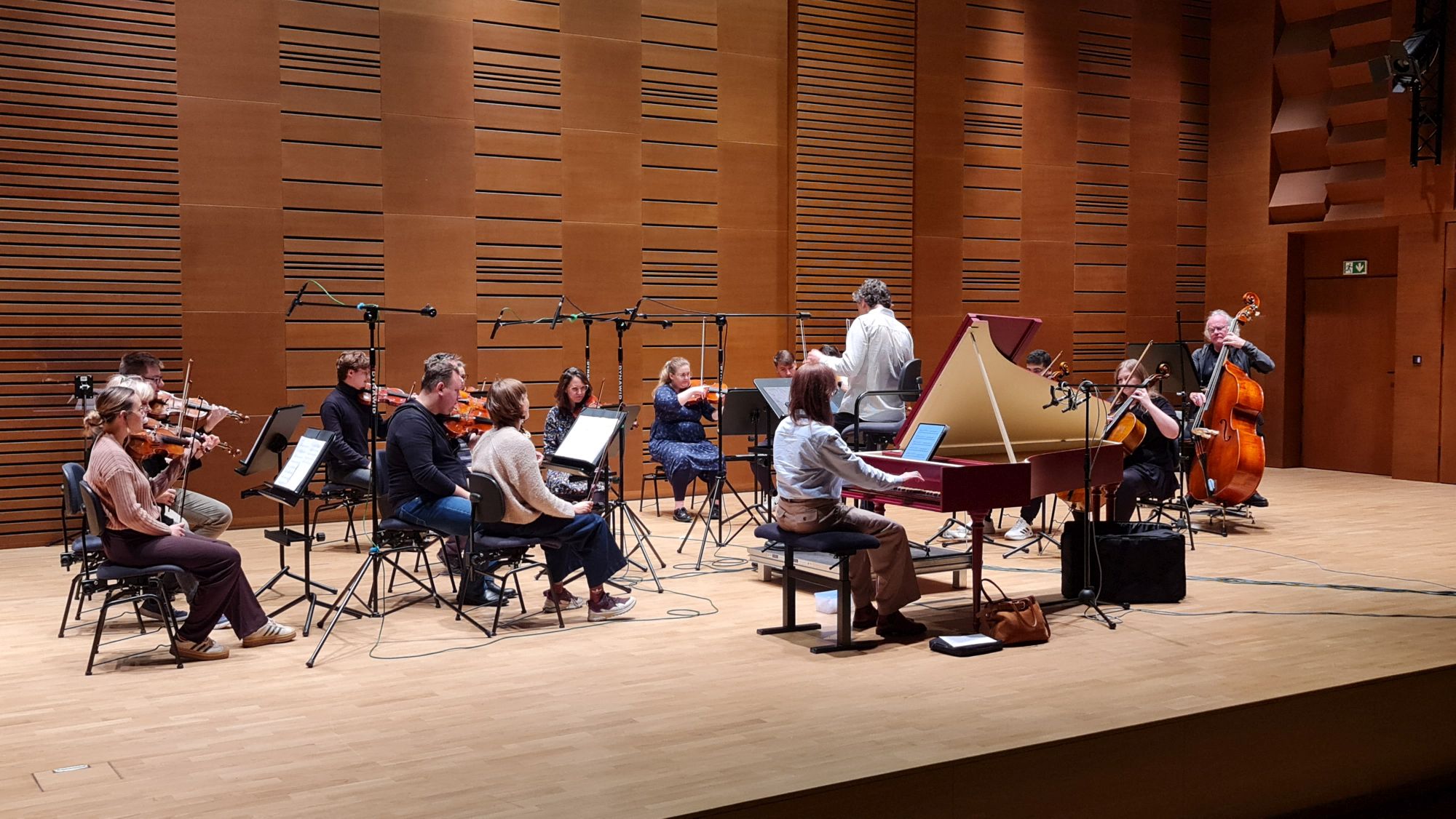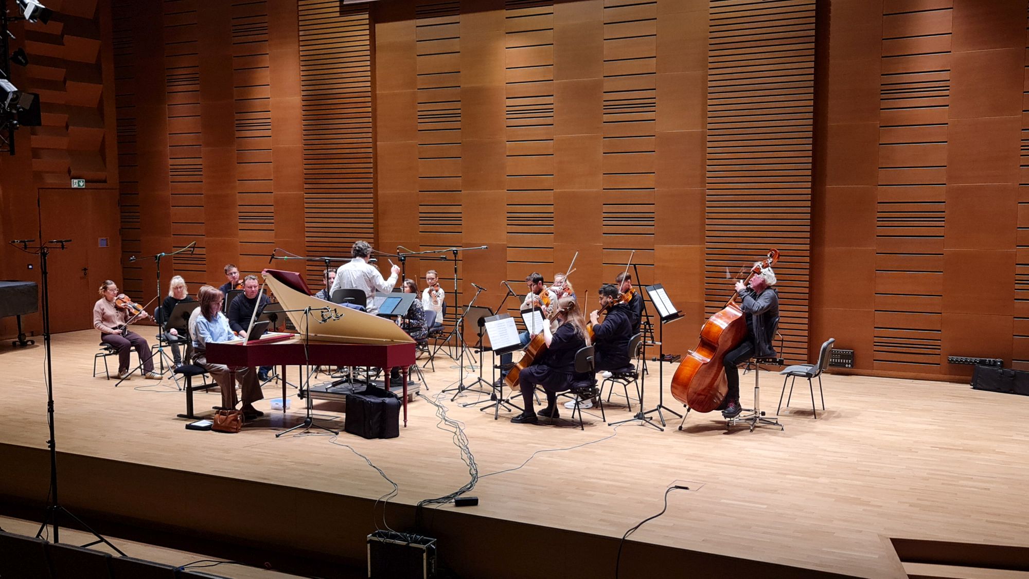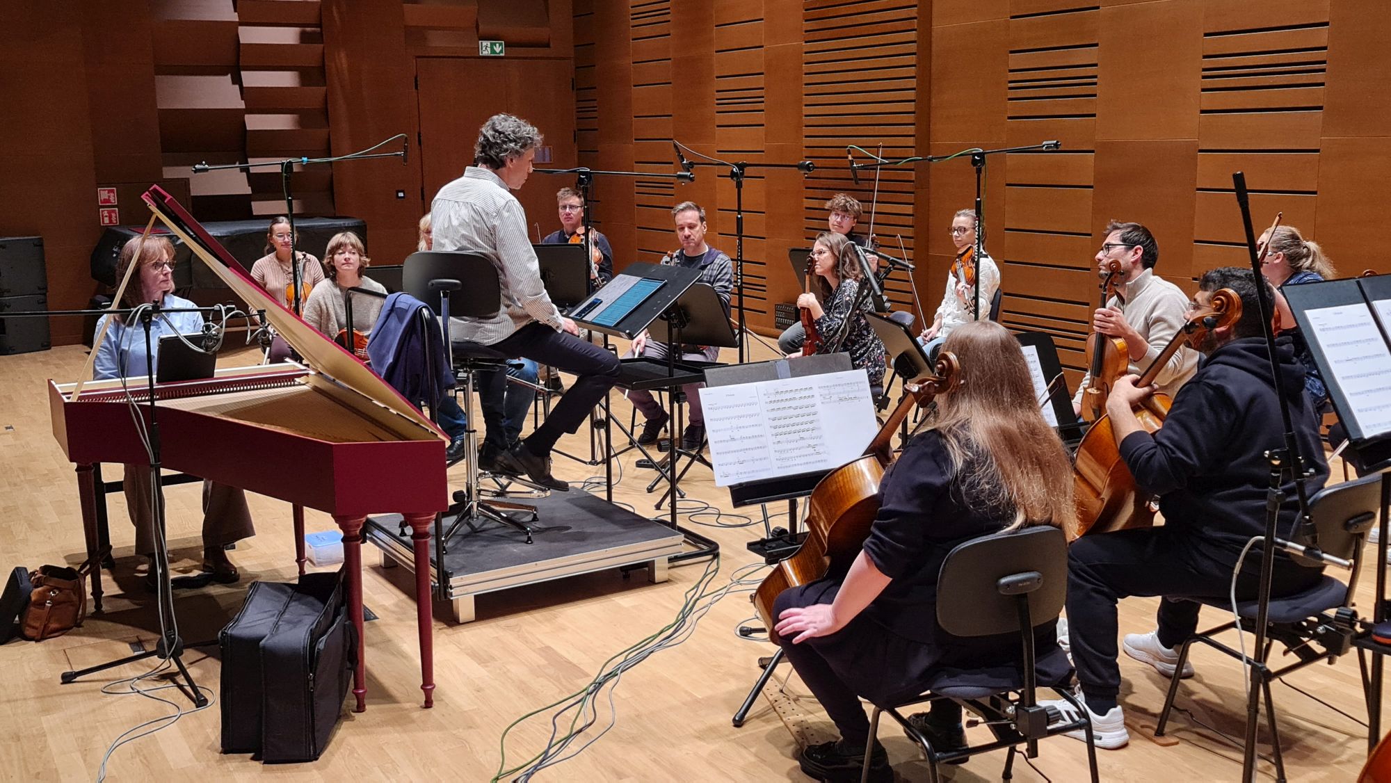Zdjęcia z nagrań, które odbyły się 5 listopada 2025 i podczas których zarejestrowaliśmy „Music for Blue Notes” na klawesyn i smyczki Mikołaja Hertla. Partię solową wykonała klawesynistka Alina Ratkowska, której towarzyszyła orkiestra Filharmonii Kameralnej im. Witolda Lutosławskiego w Łomży pod batutą Jana Miłosza Zarzyckiego. Reżyserem dźwięku był Andrzej Brzoska.