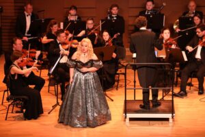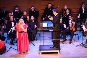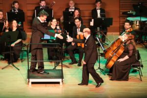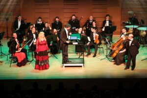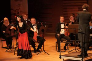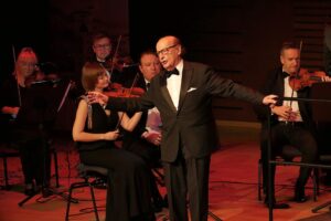 Pierwszym, znanym już z poprzedniego koncertu, był kolejny evergreen Stolza, „In Wien gibt’s manch’ winziges Gasserl (Wienerlied)”, ale z polskim tekstem, oznajmującym wszem i wobec, że nie tylko w Wiedniu, ale również i w Łomży są urokliwe zakątki i uliczki. Na finał zabrzmiała zaś nieśmiertelna aria „Usta milczą, dusza śpiewa” z operetki „Wesoła wdówka” Franza Lehára, ale zanim do tego doszło soliści i orkiestra, prowadzeni przez niezwykle skupionego na efekcie końcowym Jana Miłosza Zarzyckiego, zapewnili publiczności mnóstwo artystycznych doznań na najwyższym poziomie. Utytułowani soliści to jedno, ale łomżyńscy filharmonicy okazali się ich równorzędnymi partnerami, wykonującymi do tego stylowo liczne kompozycje instrumentalne. Nie mogło wśród nich zabraknąć perełek autorstwa Johanna Straussa syna z walcem Odgłosy wiosny op. 410, Marszem perskim op. 289 i Tritsch-tratsch Polka op. 214 na czele. Równie mocnymi punktami programu były też jednak w drugiej części koncertu Farandole z II Suity Alrezjanka Georgesa Bizeta, „Jalousie Tango” Jacoba Gade’a w opracowaniu poprzedniego dyrektora orkiestry Tadeusza Chachaja (1929-2021), ale słuchacze najbardziej owacyjnie przyjęli Zapateado z Tańców hiszpańskich op. 23 Pablo de Sarasatego, z racji udziału w tym utworze jako solistki wyśmienitej skrzypaczki i jednocześnie koncertmistrzyni FKWL, Izabeli Bławat-Leofreddi.