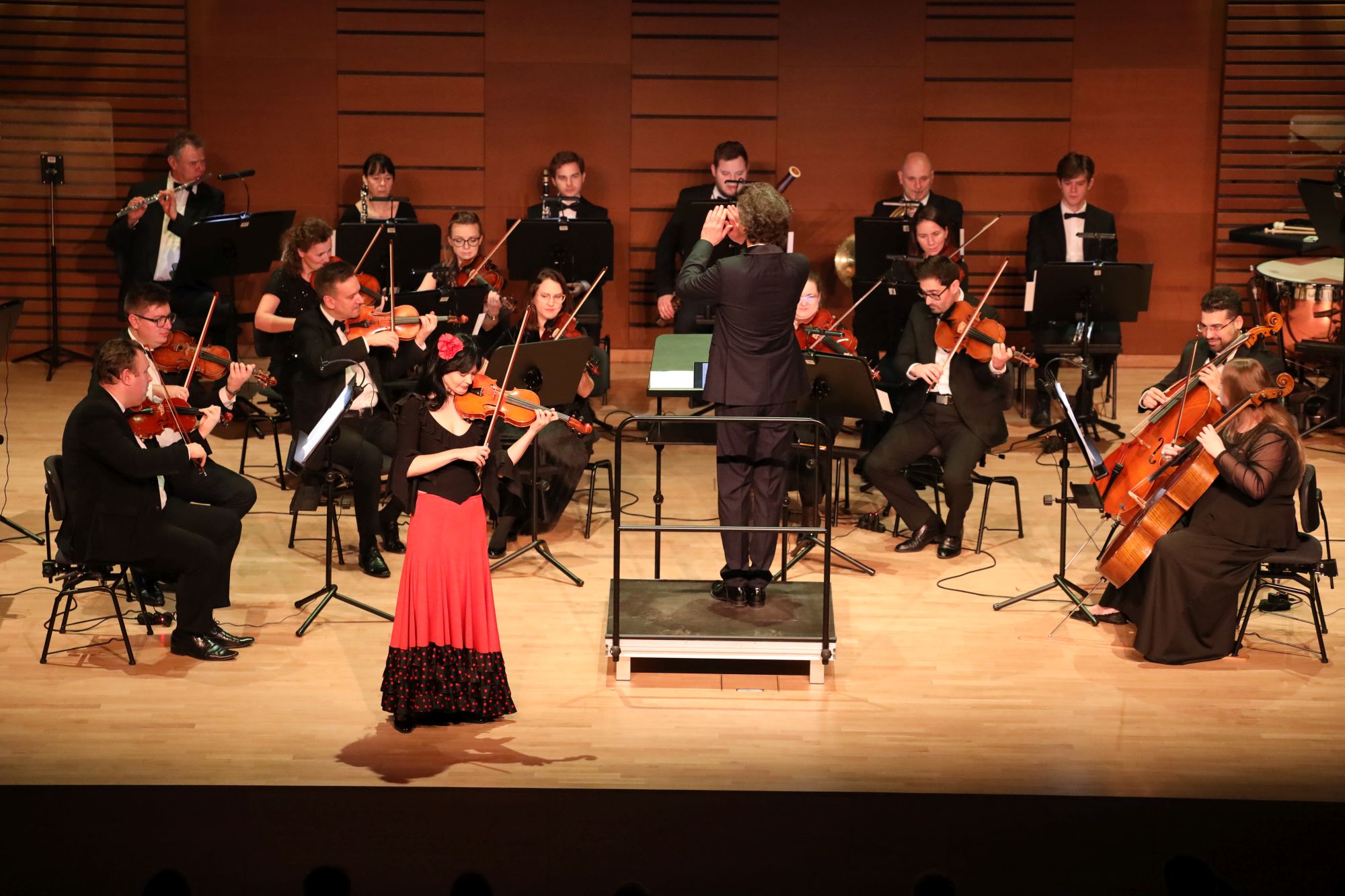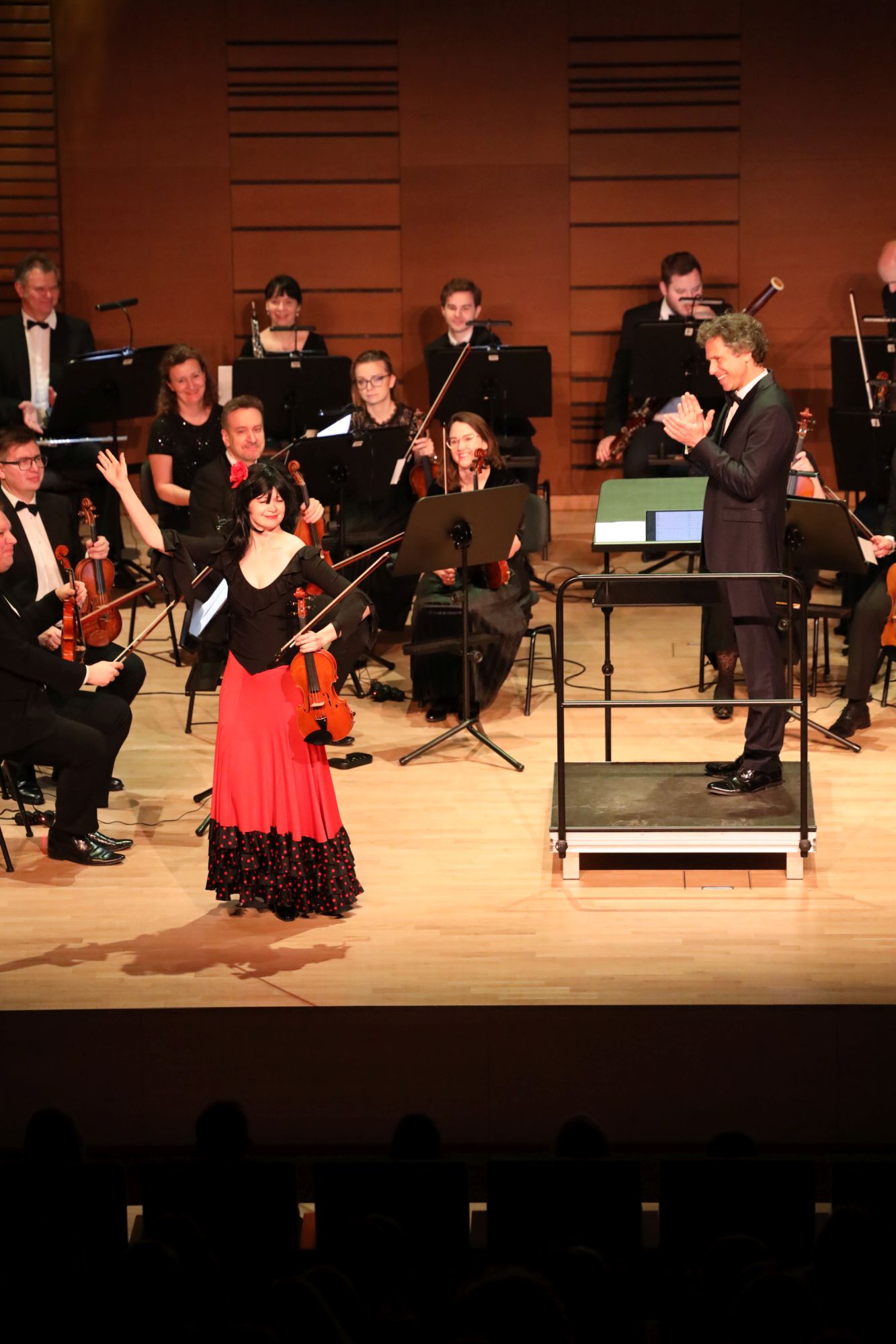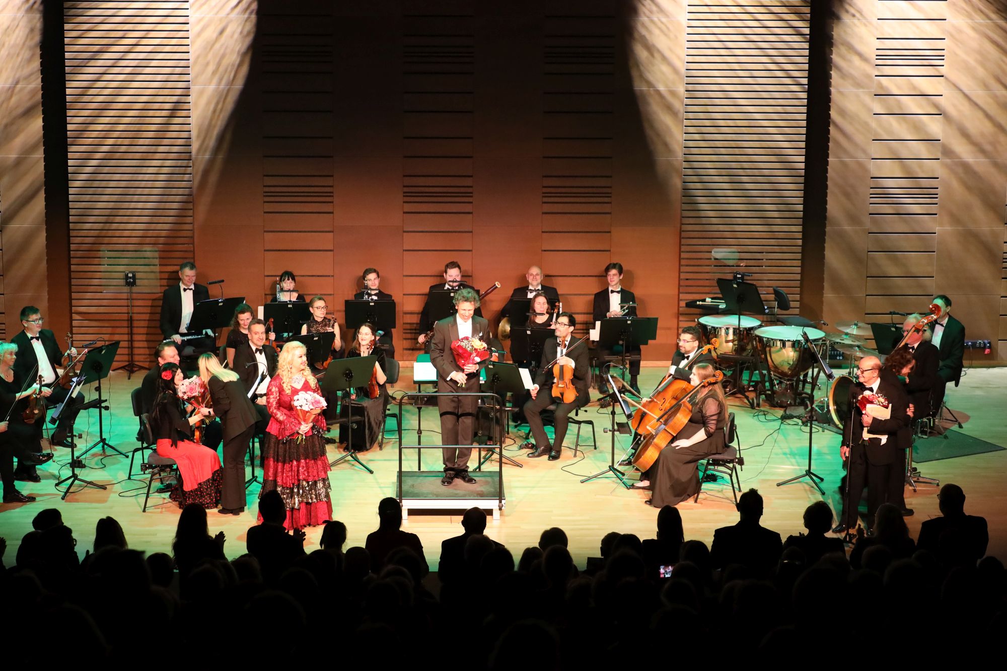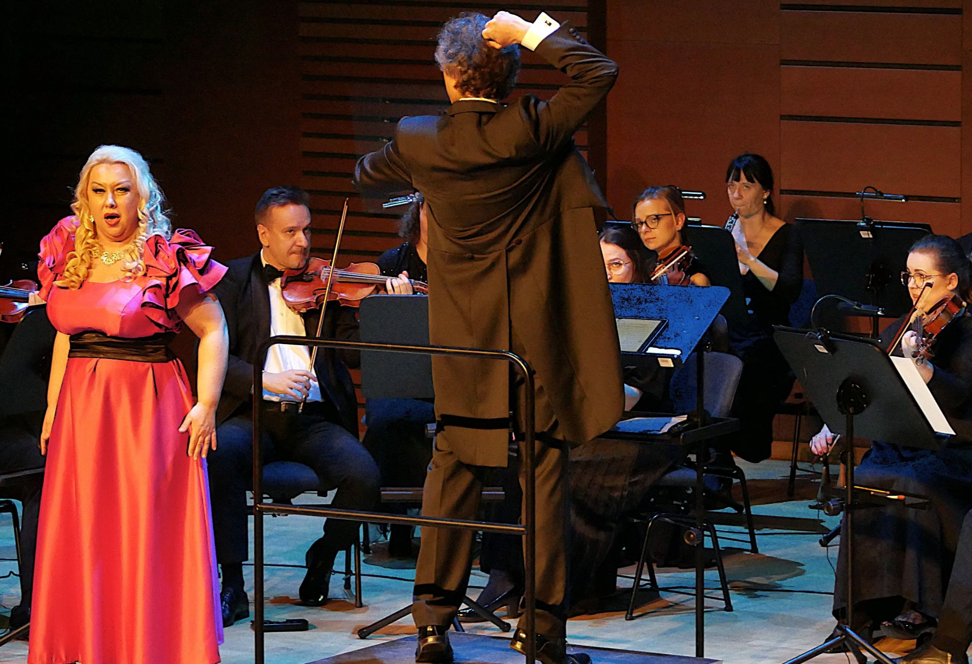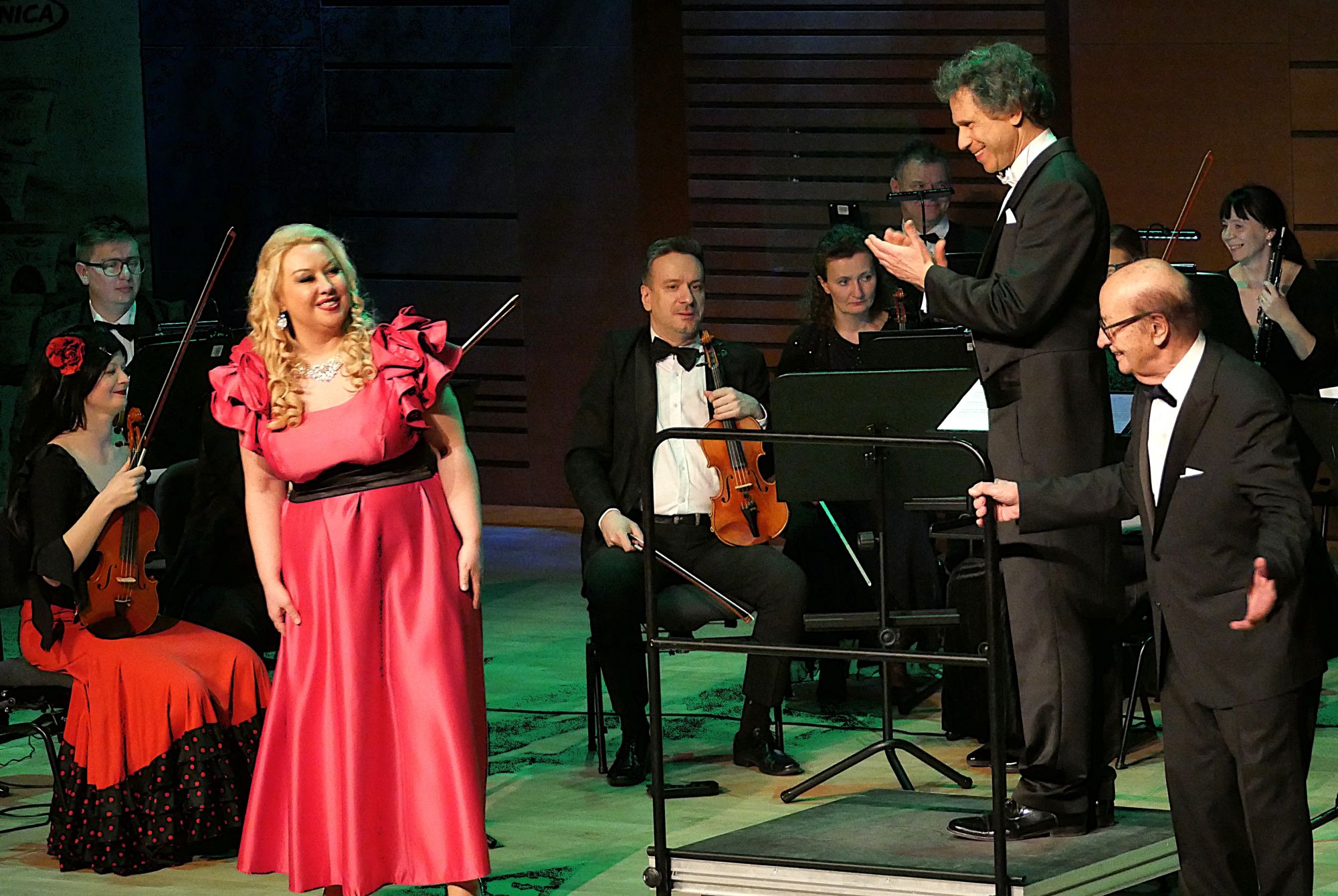 Pierwszym, znanym już z poprzedniego koncertu, był kolejny evergreen Stolza, „In Wien gibt’s manch’ winziges Gasserl (Wienerlied)”, ale z polskim tekstem, oznajmującym wszem i wobec, że nie tylko w Wiedniu, ale również i w Łomży są urokliwe zakątki i uliczki. Na finał zabrzmiała zaś nieśmiertelna aria „Usta milczą, dusza śpiewa” z operetki „Wesoła wdówka” Franza Lehára, ale zanim do tego doszło soliści i orkiestra, prowadzeni przez niezwykle skupionego na efekcie końcowym Jana Miłosza Zarzyckiego, zapewnili publiczności mnóstwo artystycznych doznań na najwyższym poziomie. Utytułowani soliści to jedno, ale łomżyńscy filharmonicy okazali się ich równorzędnymi partnerami, wykonującymi do tego stylowo liczne kompozycje instrumentalne. Nie mogło wśród nich zabraknąć perełek autorstwa Johanna Straussa syna z walcem Odgłosy wiosny op. 410, Marszem perskim op. 289 i Tritsch-tratsch Polka op. 214 na czele. Równie mocnymi punktami programu były też jednak w drugiej części koncertu Farandole z II Suity Alrezjanka Georgesa Bizeta, „Jalousie Tango” Jacoba Gade’a w opracowaniu poprzedniego dyrektora orkiestry Tadeusza Chachaja (1929-2021), ale słuchacze najbardziej owacyjnie przyjęli Zapateado z Tańców hiszpańskich op. 23 Pablo de Sarasatego, z racji udziału w tym utworze jako solistki wyśmienitej skrzypaczki i jednocześnie koncertmistrzyni FKWL, Izabeli Bławat-Leofreddi.