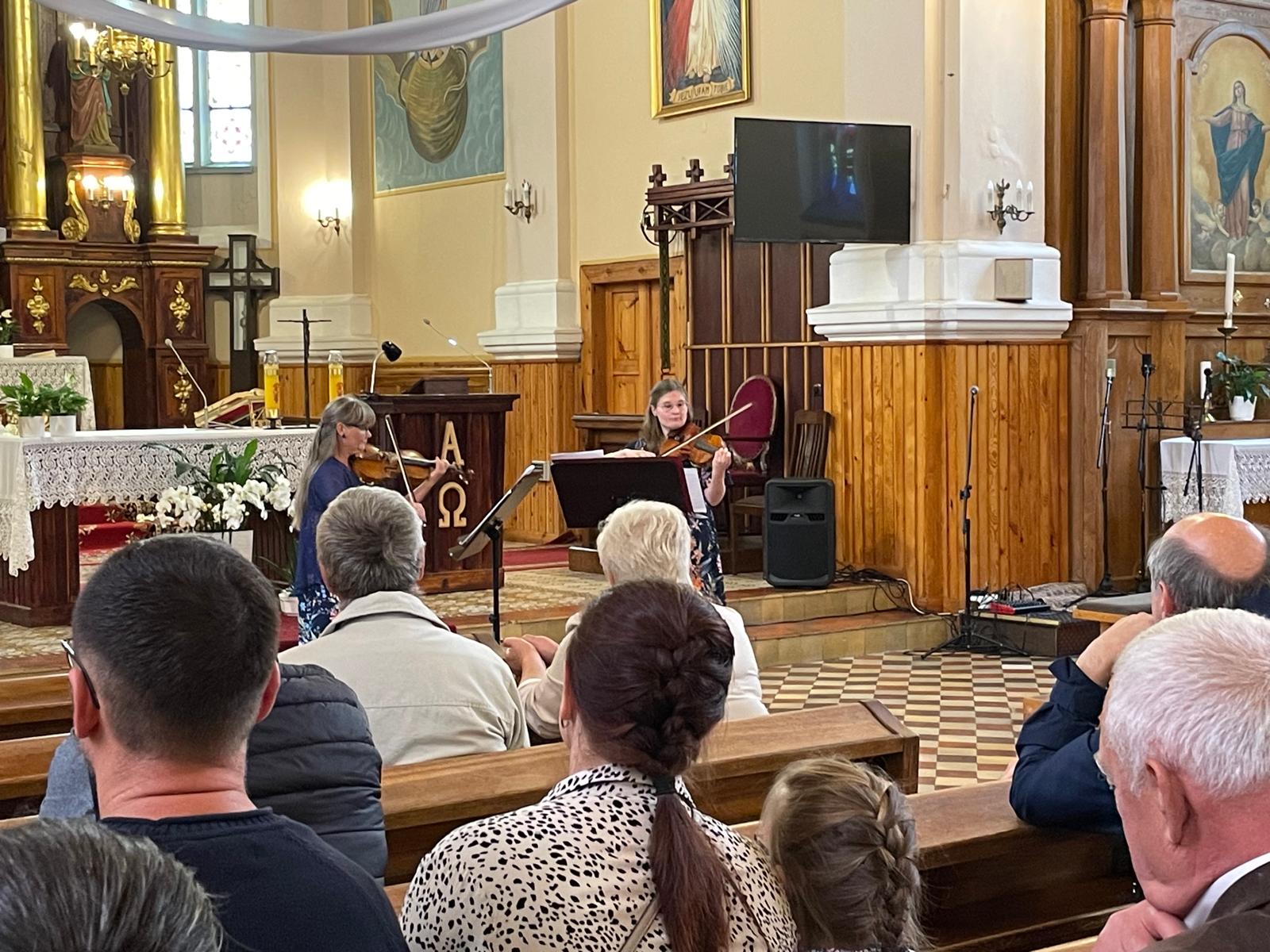 W niedzielę 14 września 2025 odbyły się kolejne 3 koncerty w ramach XXI Międzynarodowego Festiwalu Kameralistyki Sacrum et Musica. Ten pracowity dzień rozpoczęliśmy w Kościele pw. św. Wincentego a’Paulo w Zbójnej, gdzie wystąpił duet skrzypcowy: Aleksandra Szwejkowska-Belica i Maria Belica-Mieczkowska. Artystki oczarowały zebranych melomanów, którzy żegnali je długimi owacjami na stojąco.