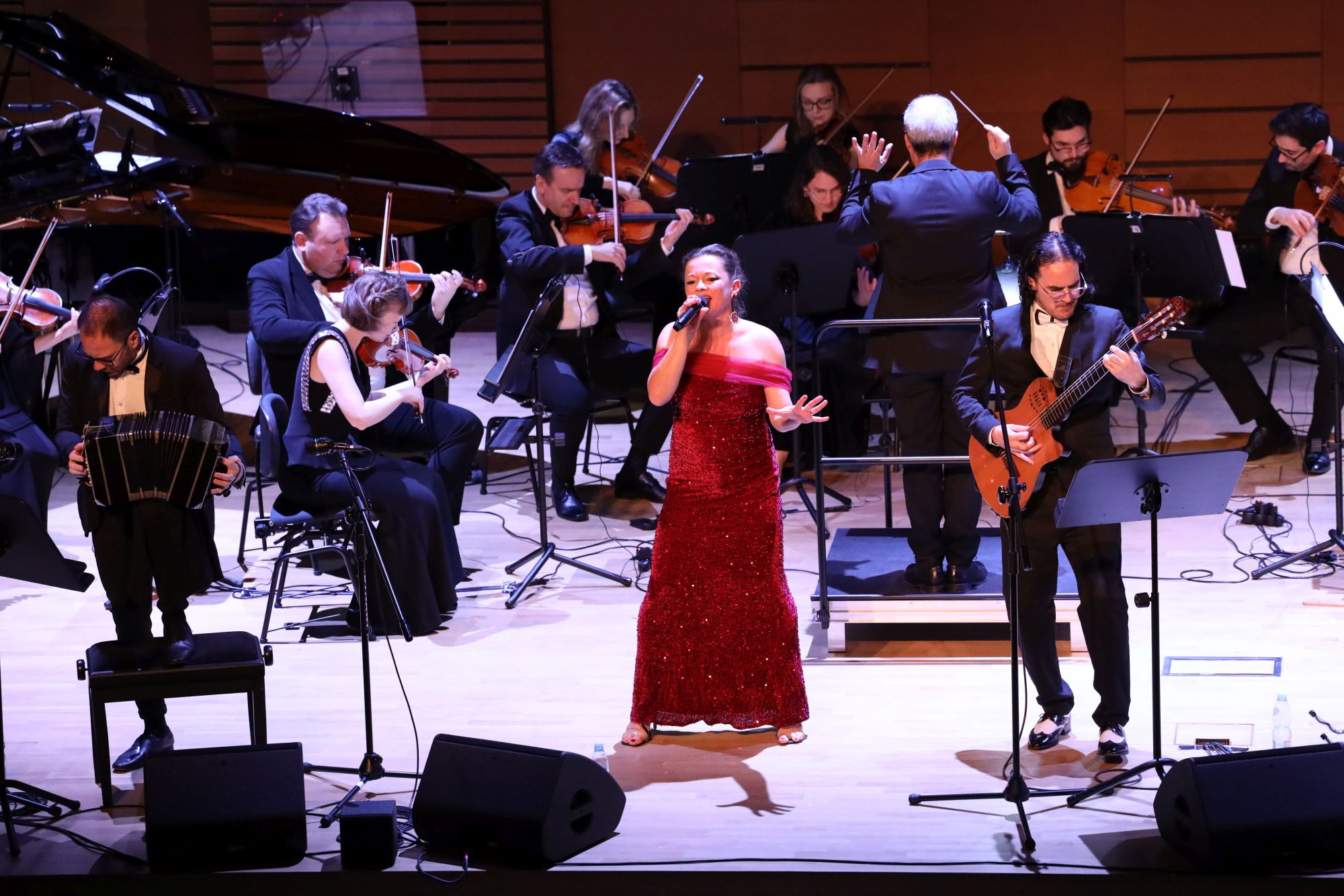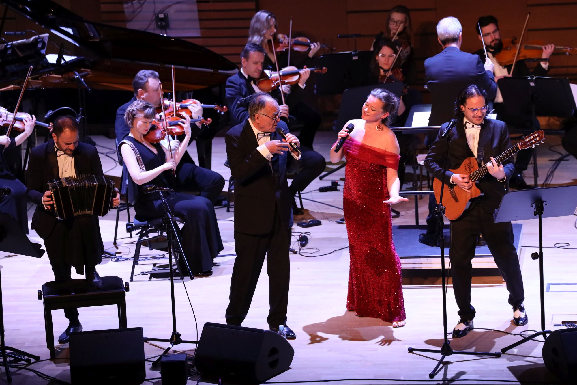 Pomimo radosnej, iście karnawałowej atmosfery, podsycanej kolejnymi, dynamicznymi utworami, jak „Azúcar, Pimienta y Sal” Héctora Vareli i Ernesto Rossiego, „Se dice de mí” Francisco Canaro czy jeszcze bardziej skocznego „Alma, corazón y Vida” Adriána Floresa Albána, widzowie w niezwykłym skupieniu słuchali również dramatycznej ballady „Amor desolado” Alberto Corteza czy lirycznego „Poema” Mario Melfiego. Uwidaczniał się w nich nie tylko wokalny kunszt Torresa seniora, założyciela zespołu przed blisko 20. laty, ale jego obu synów i przybranej córeczki, jak mówiła Magdalena Lechowska, ale też ich umiejętności instrumentalne. Dzielnie im w tym sekundowała orkiestra smyczkowa Filharmonii Kameralnej, wsparta pianistką Anną Hajduk-Rynkowicz, która była szczególnie słyszalna w instrumentalnym „Libertango” i „Pobre Flor” Luisa Mottolesego.
