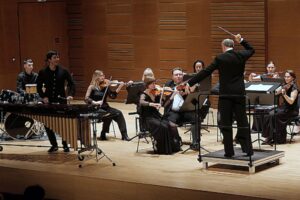 Kolejnym punktem programu był współczesny Koncert na marimbę i orkiestrę brazylijskiego kompozytora Neya Rosauro, będący, jak podkreślał prowadzący koncert Mateusz Goc, najpopularniejszym koncertem wszech czasów napisanym na ten instrument.