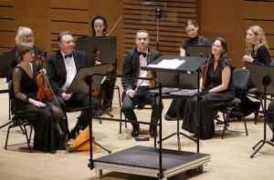 Chociaż końcówka listopada nie zachęca do wychodzenia z domu, bo aura jest dla nas wyjątkowo nieprzychylna, to frekwencja podczas kolejnego już koncertu Filharmonii Kameralnej znowu robiła wrażenie – tym większe, że był to koncert o klasycznym programie, z rozpoczynającymi każdą jego część kompozycjami szacownych brytyjskich twórców, Petera Warlocka i Beniamina Brittena. Jako pierwszą 14-osobowy skład orkiestry smyczkowej z koncertmistrzynią Izabelą Bławat-Leofreddi na czele wykonał sześcioczęściową Capriol Suite