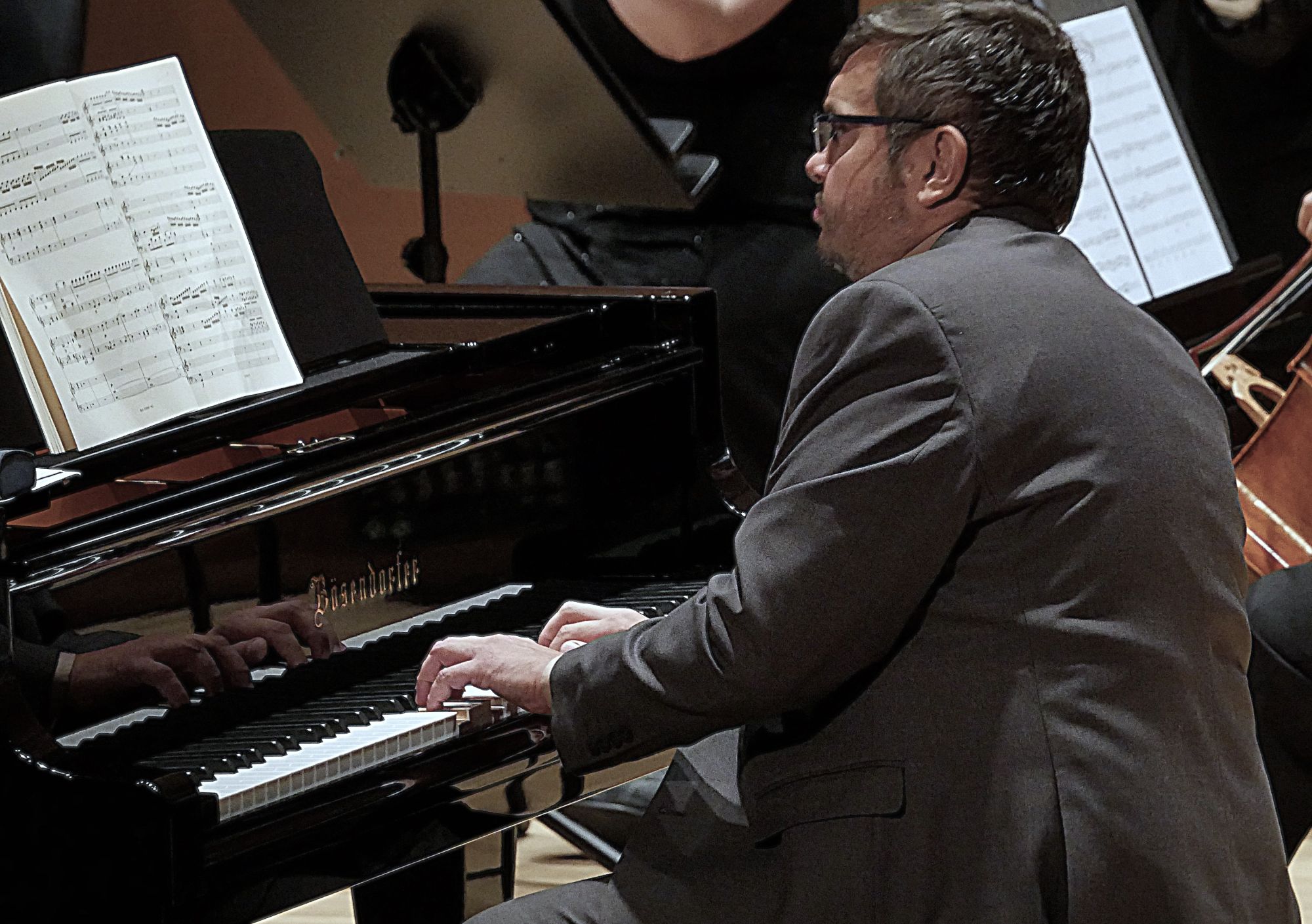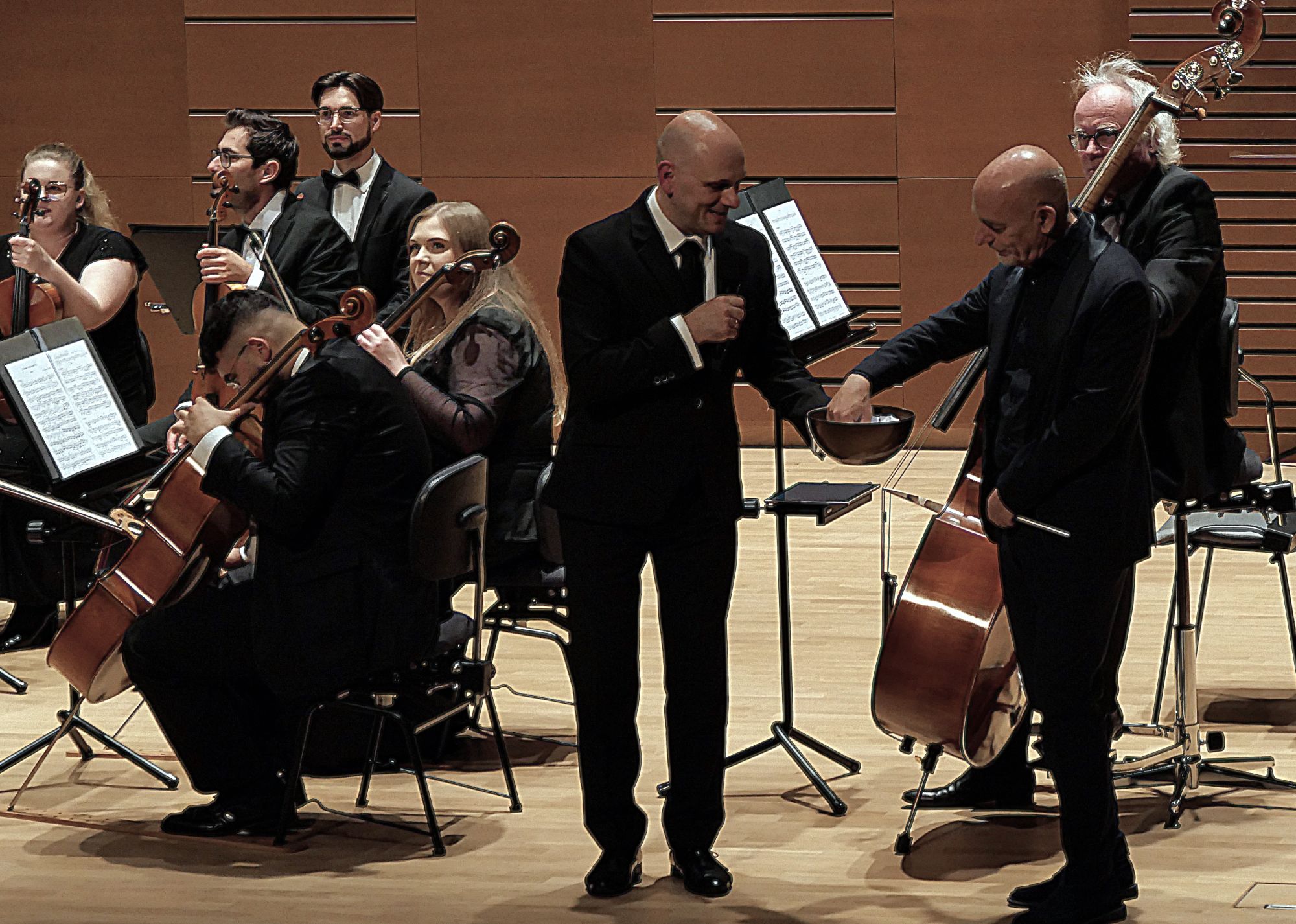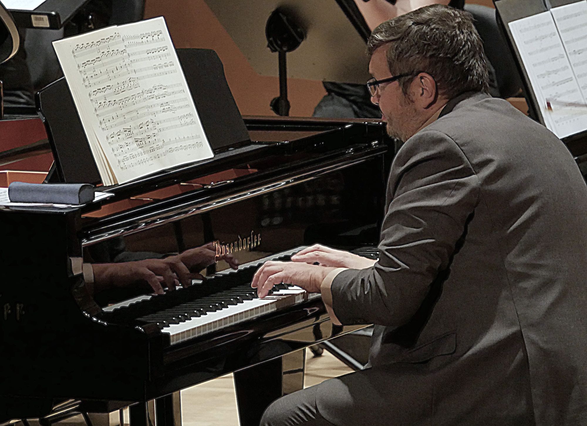 Po tym interesującym wprowadzeniu zabrzmiały dwa główne punkty programu. Dzięki partnerom koncertu, firmom Yamaha i Bösendorfer, za ich fortepianami zasiedli dwaj utytułowani pianiści Michał Rot i Marcin Kawczyński, od niedawna współpracujący w duecie i występujący wspólnie coraz częściej. Już w Koncercie na 2 fortepiany nr 7 F-dur KV 242 Mozarta zaprezentowali artystyczną dojrzałość, interpretacyjną wrażliwość, mistrzowskie opanowanie instrumentów, a do tego również perfekcyjne zgranie, co przełożyło się na nader stylowe, skrzące się różnymi barwami, wykonanie. W Koncercie na 2 fortepiany c-moll BWV 1060 Jana Sebastiana Bacha finezja techniczna obu pianistów oraz równie duża swoboda wykonawcza były równie imponujące, ale godne podkreślenie jest to, że mieli oni w orkiestrze równorzędnych partnerów, co podkreślali po koncercie, komplementując łomżyńskich muzyków, a współpracujący z Filharmonią Kameralną od lat maestro de Lorenzo poprowadził całość z ogromnym wyczuciem, wykorzystując wszystkie atuty niewielkiej, zaledwie 15-osobowej, ale świetnie brzmiącej orkiestry smyczkowej.
